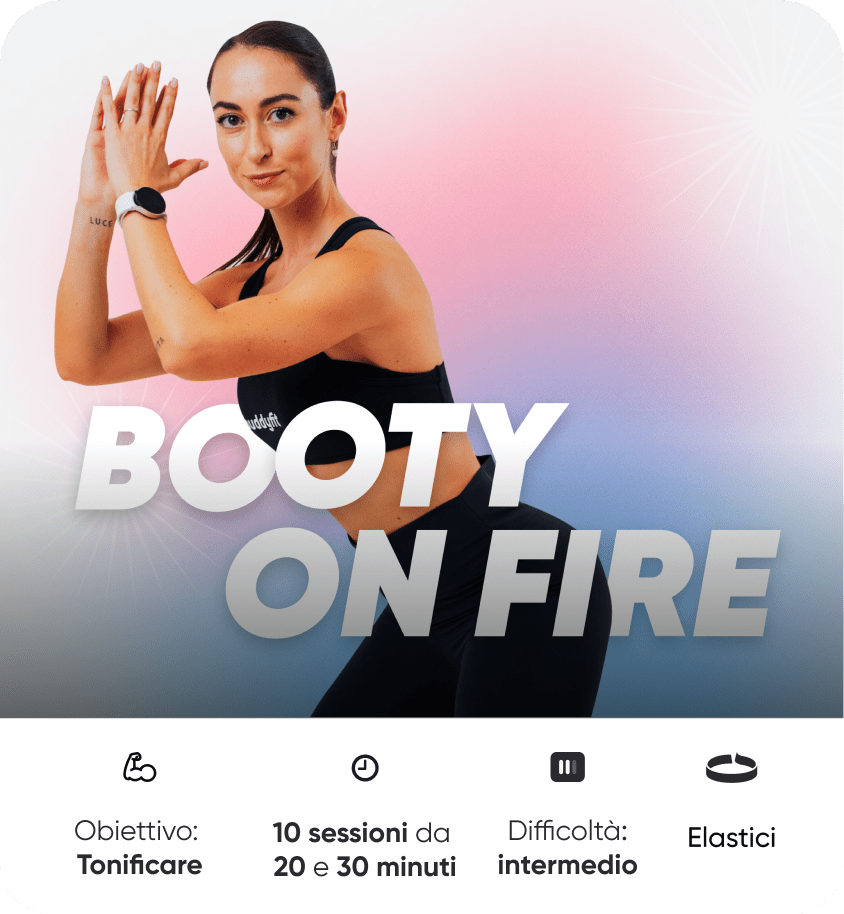 Cosa troverai? Sessioni da 30 minuti per tonificare gambe, glutei, ma anche braccia e addome a corpo libero.