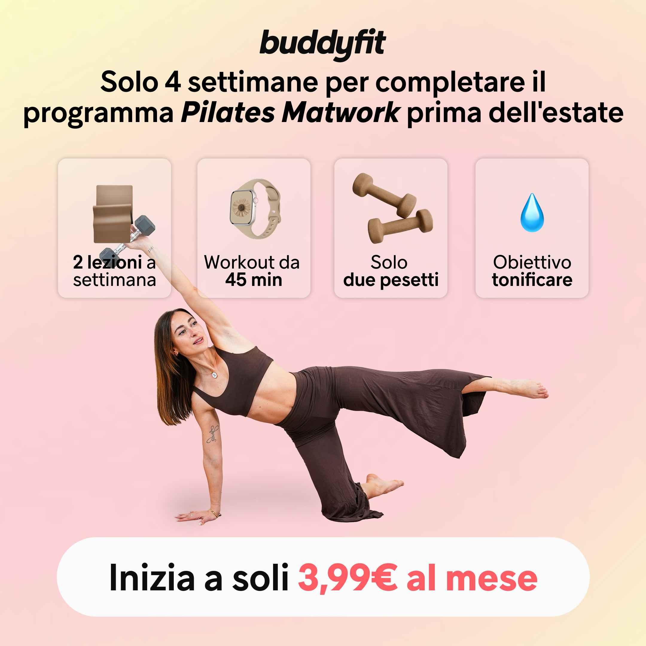 Se vuoi iniziare subito, senza pensarci troppo, prova il workout gratuito da 15 minuti di Buddyfit: bastano un quarto d'ora per allenarti in modo efficace ovunque tu sia, anche in piena estate.